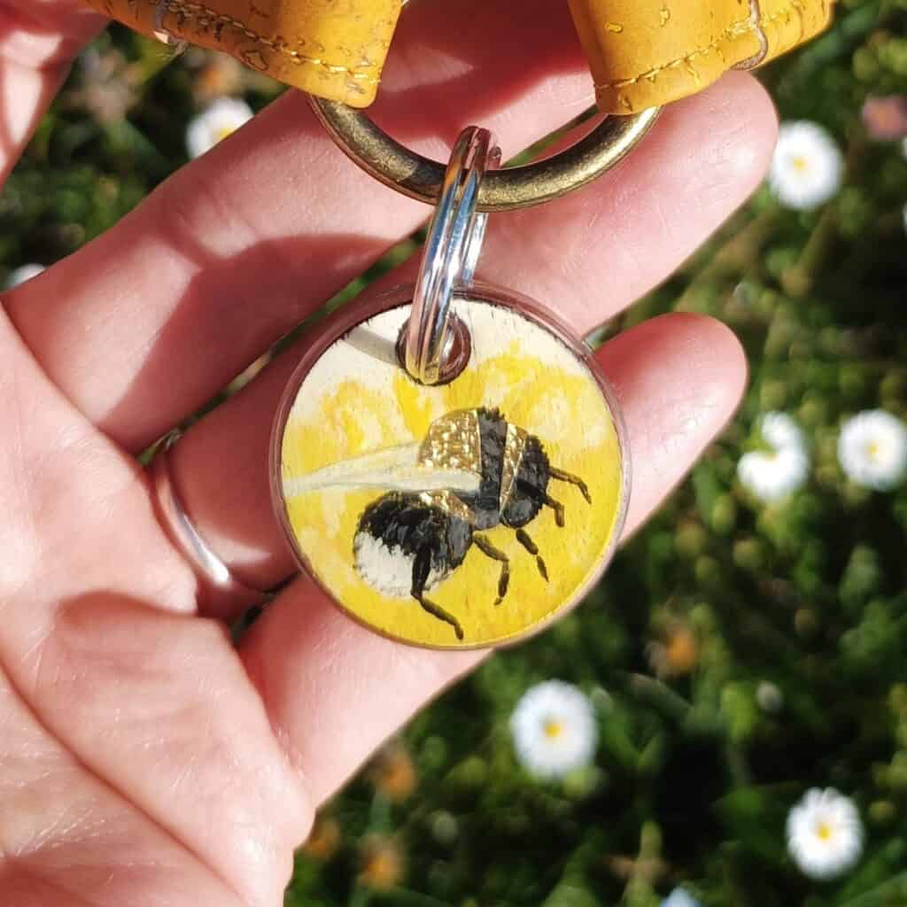 Ce petit bourdon est peint à la main, avec une peinture biosourcée.