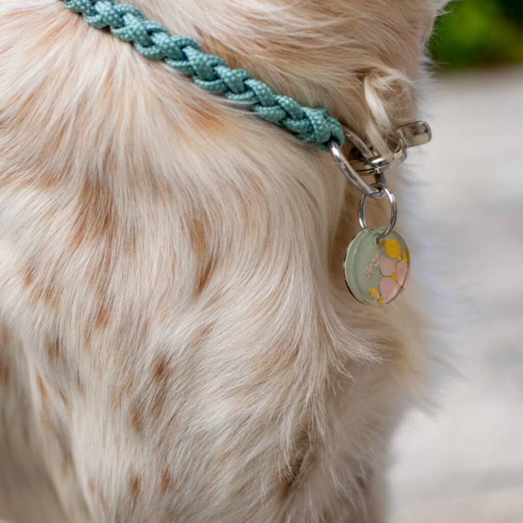 L’attache métallique a été rigoureusement choisie pour lui assurer de rester fixement attachée au collier de votre animal.