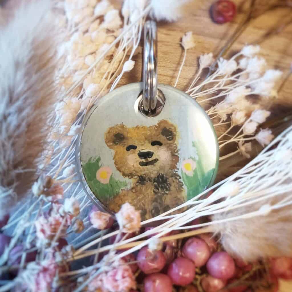 Cette jolie médaille est peinte à la main avec une peinture biosourcée pour rendre hommage à l’Ours des Pyrénées et plus particulièrement à ses oursons. 🧡